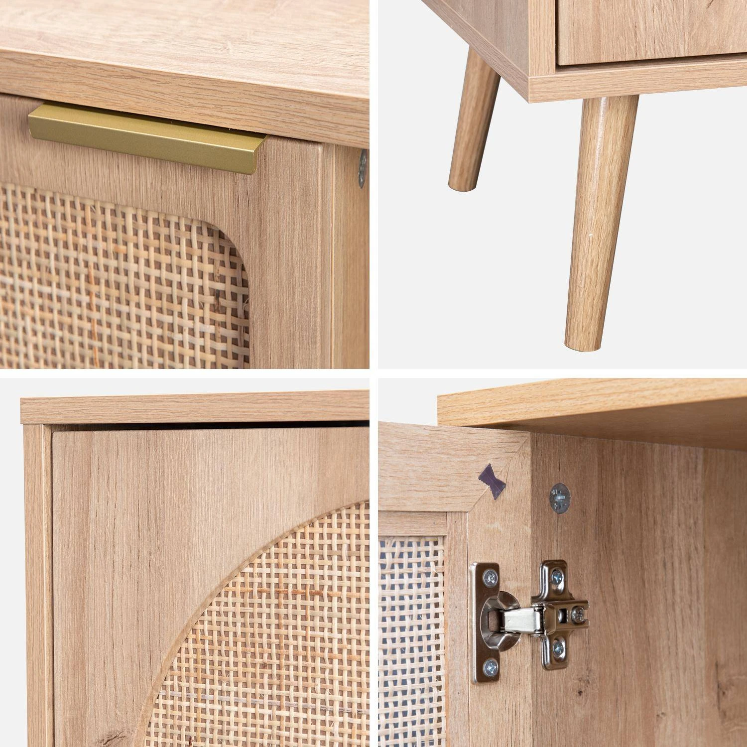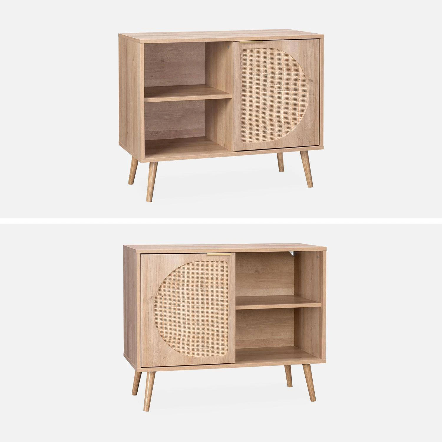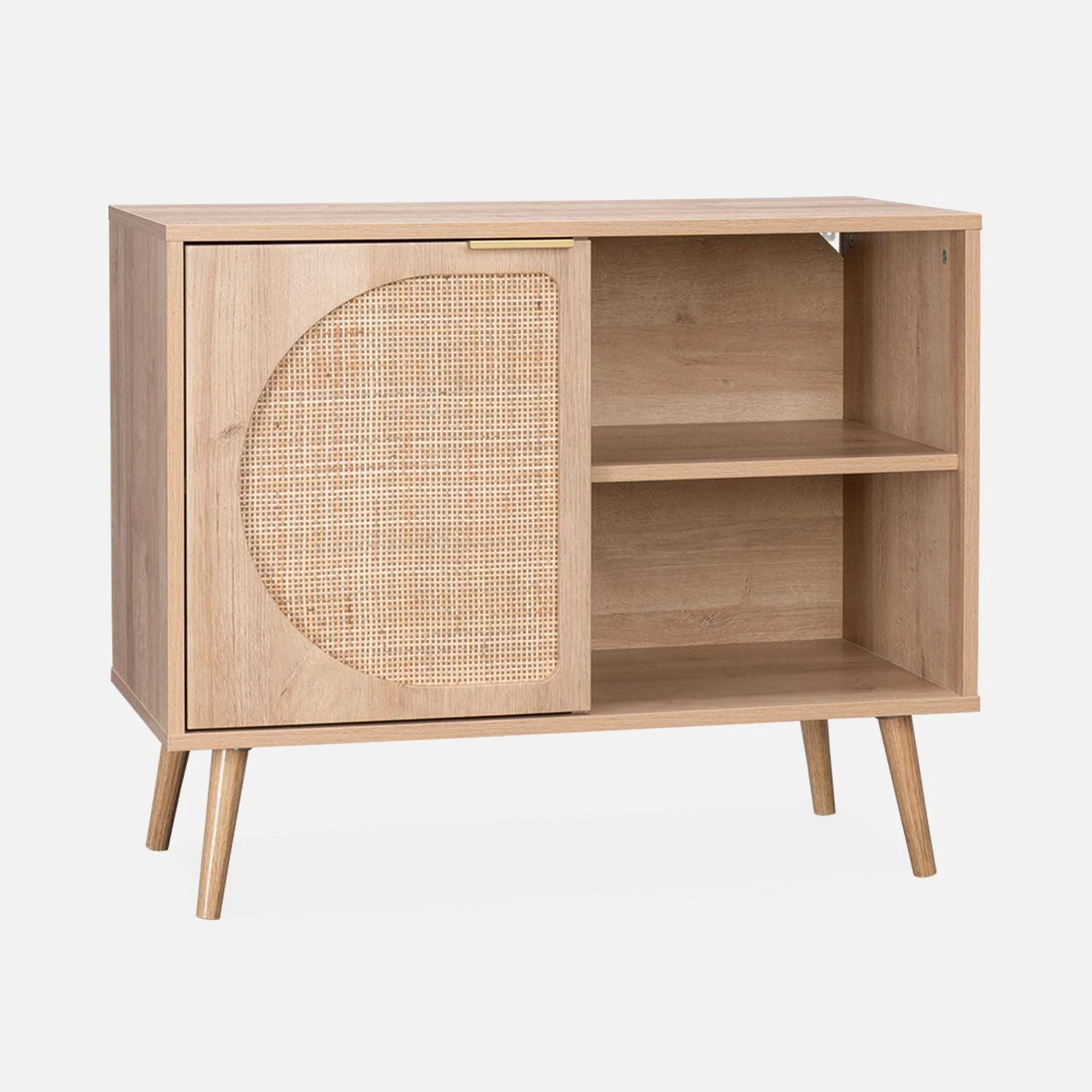 Buffet Scandinave Décor Bois Et Cannage Arrondis 1 Portes 80cm