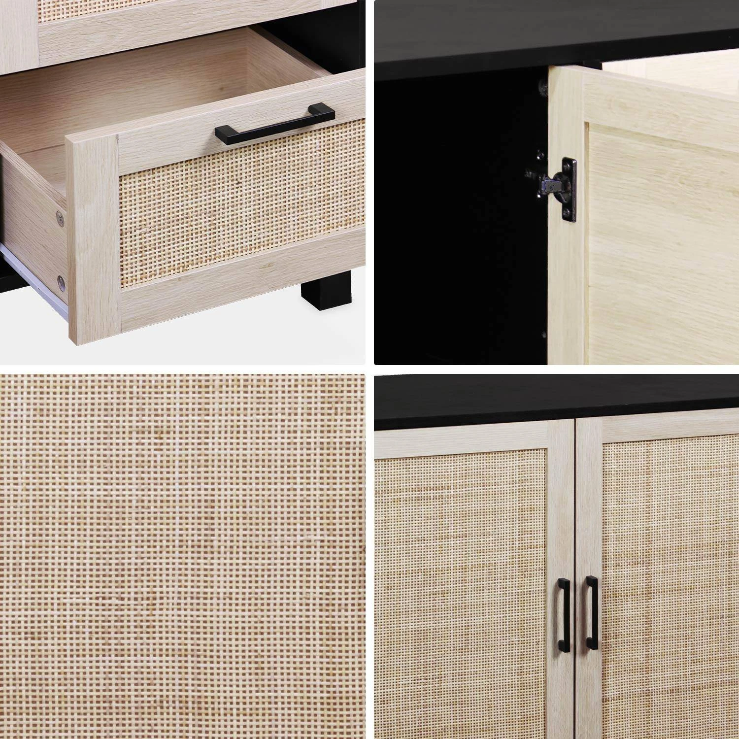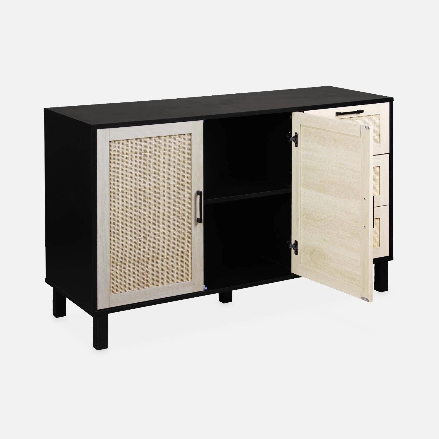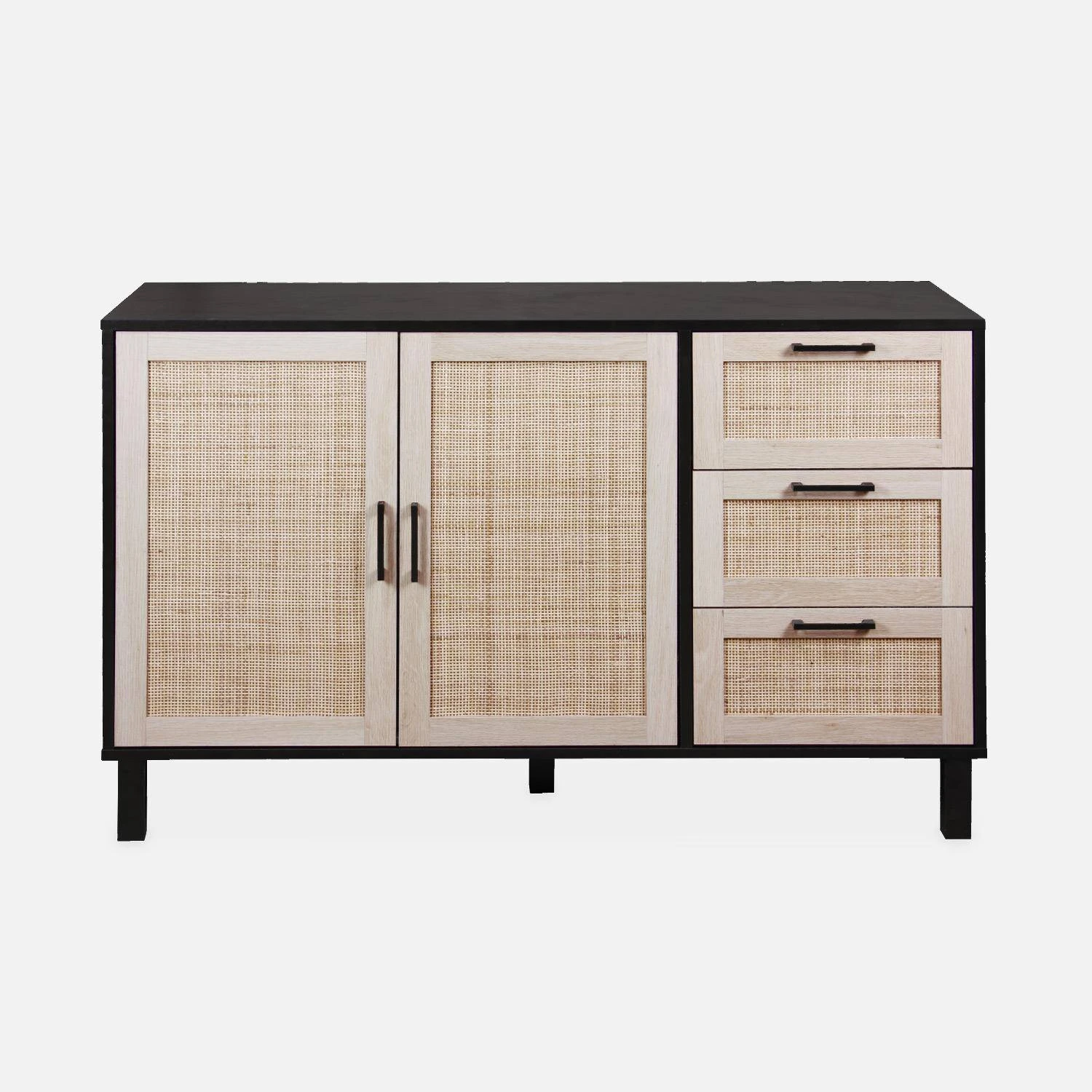 Lâesprit vintage sâinvite dans votre intĂ©rieur avec ce buffet de rangement au charme scandinave. Le noir se marie parfaitement avec le cannage qui habille le meuble avec Ă©lĂ©gance. Ses pieds carrĂ©s et ses poignĂ©es noires en font une piĂšce moderne et originale qui se distinguera dans votre intĂ©rieur.
