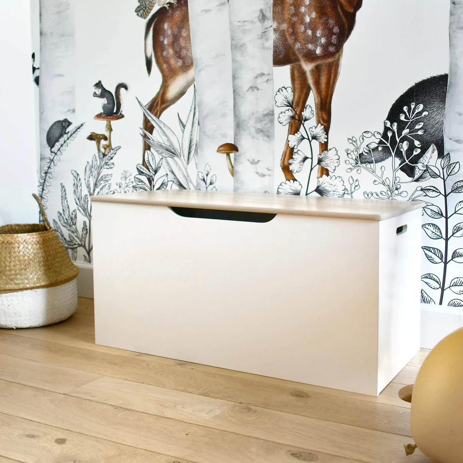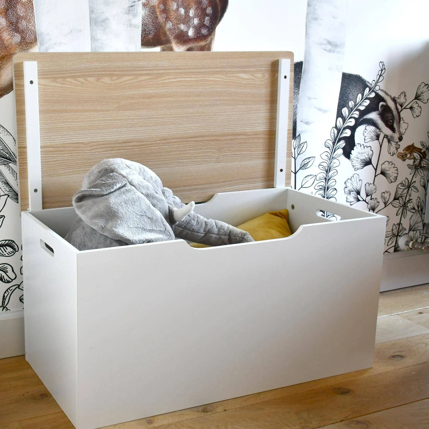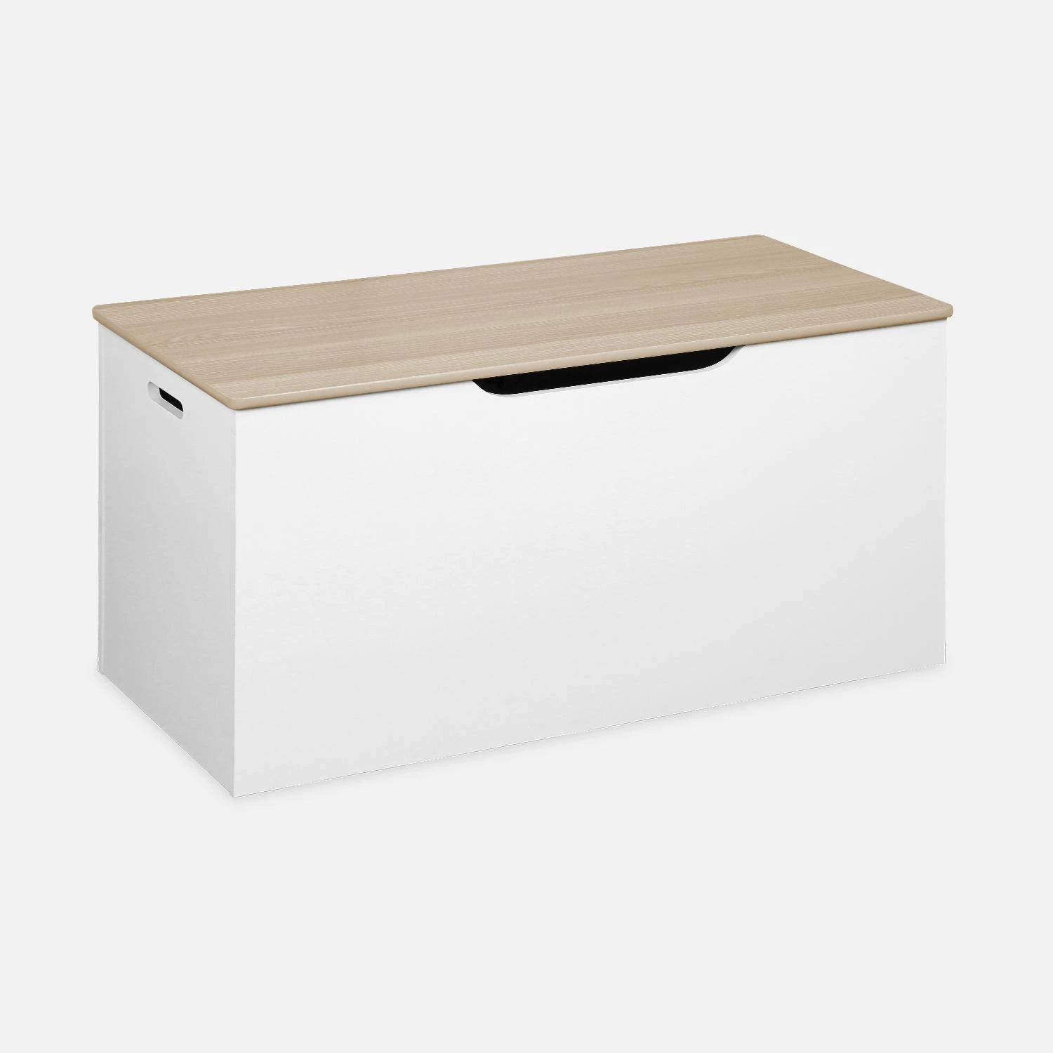Coffre à Jouets, Couvercle Rabattable, Poignées Latérales Couleur : Blanc