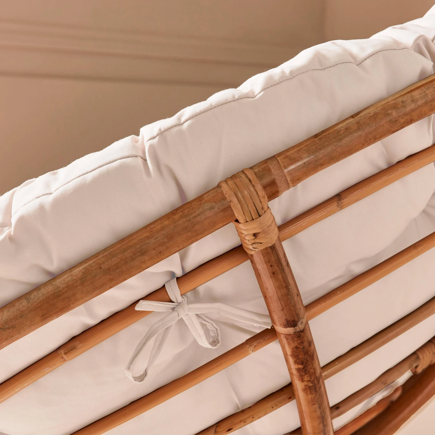 Cette loveuse n’est pas un simple fauteuil, c’est aussi un vrai objet déco ! Avec sa structure en rotin et son design aux influences bohèmes, il apporte une touche exotique dans votre intérieur. Son design incontournable en fera une pièce de choix dans votre maison.