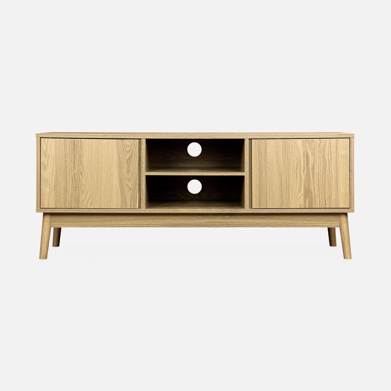 Apportez une note authentique à votre intérieur en succombant au meuble TV Dune. Sa structure en décor bois allié à son joli piétement scandinave, lui offre un look rétro qui sera du plus bel effet chez-vous. Laissez vous séduire par ses lignes sobres et épurées qui se marieront parfaitement à tous les styles de déco.