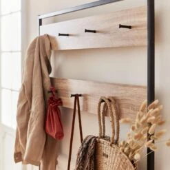 Meuble D’entrée Métal Et Décor Bois, 3 Niveaux, Barre De Penderie