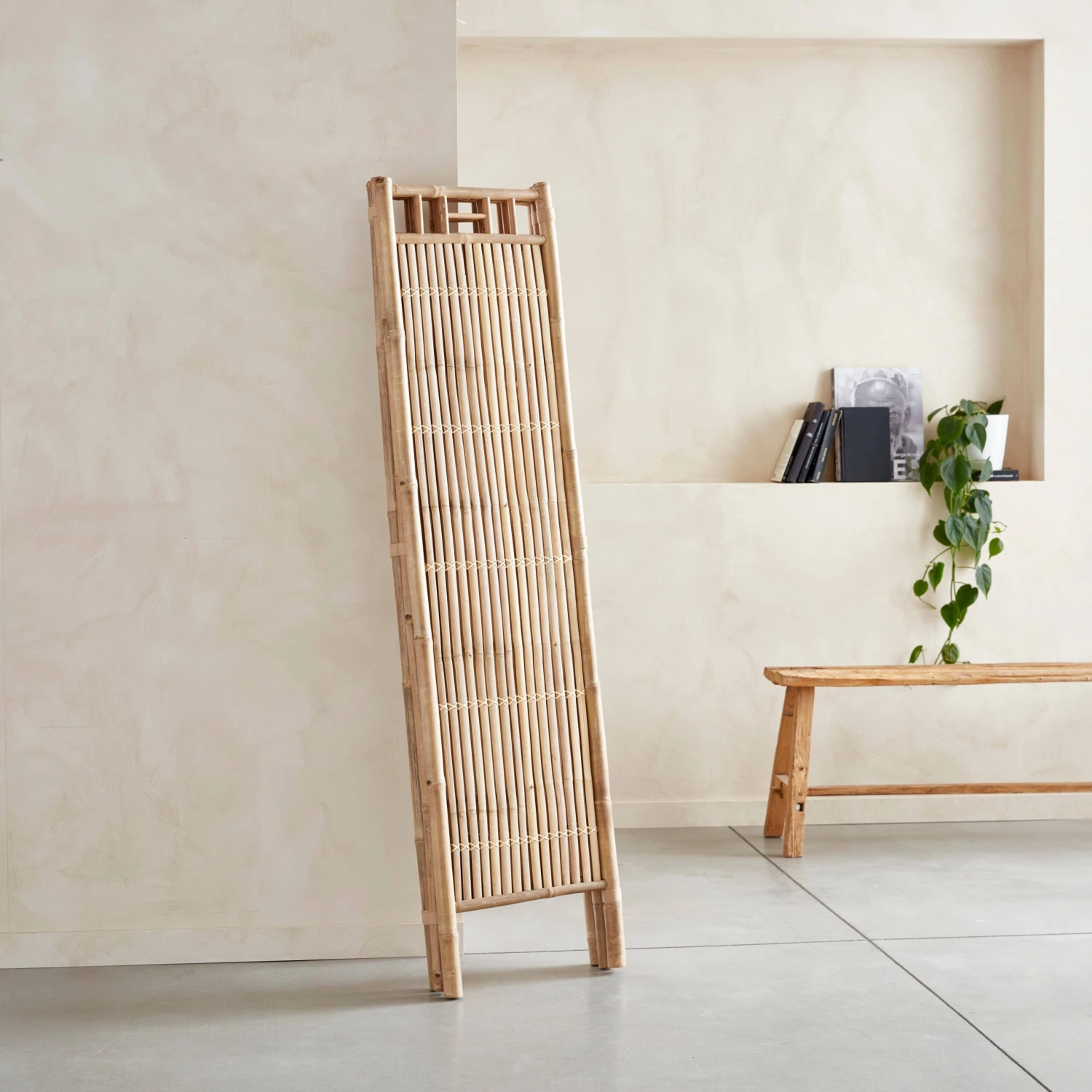 Vous disposez dâun petit espace ou vous souhaitez simplement dĂ©limiter votre piĂšce ? Ce paravent est exactement ce quâil vous faut ! Sa couleur naturelle et sa matiĂšre bambou apporteront une touche exotique Ă votre chambre, salon ou salle de bain. Son design tropical et Ă©lĂ©gant sublimera le reste de votre dĂ©coration Ă coup sĂ»r ! IdĂ©al pour diviser une piĂšce ou pour ĂȘtre Ă l’abri des regards, ce paravent saura joindre lâutile Ă la relaxation. Son petit plus ? Vous nâaurez aucun mal Ă le ranger car il est pliable et se montrera donc peu encombrant. Nâest-il pas parfait ?