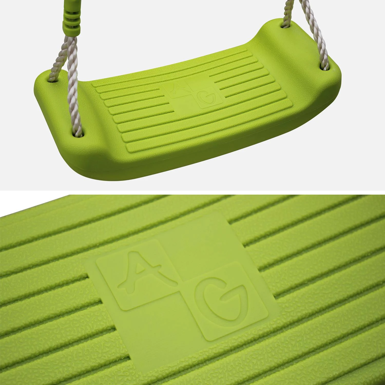 Le portique Tramontane est solide et fiable. Sa structure métallique est recouverte d’une jolie peinture époxy. Non seulement esthétique, elle limite la corrosion. La quincaillerie est en acier galvanisé et ne rouille pas. Les assises sont robustes et imputrescibles. En effet, elles sont en plastique et moulées par injection. Le cordage est synthétique.
