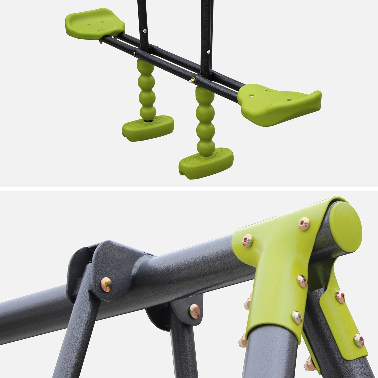 Idéal pour amuser les enfants à l’air libre, le portique Tramontane sweeek leur permet de passer des heures à se balancer. Composé de deux balançoires et d’un face à face, le portique accueille jusqu’à 4 enfants en même temps.