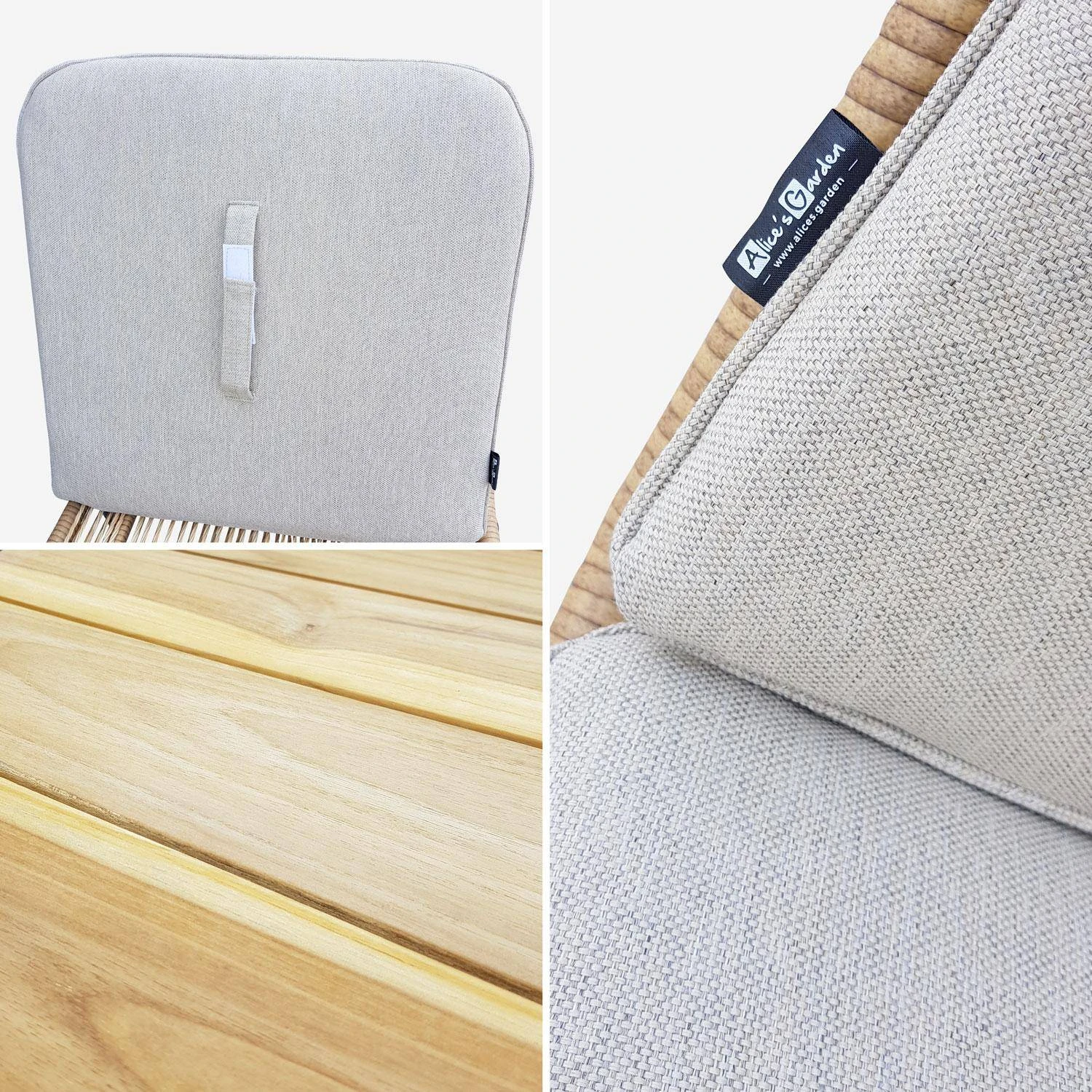 Les chaises sont basses et munies de coussins confortables et déhoussables. Elles font de cet irrésistible salon de jardin un compagnon idéal pour la détente.