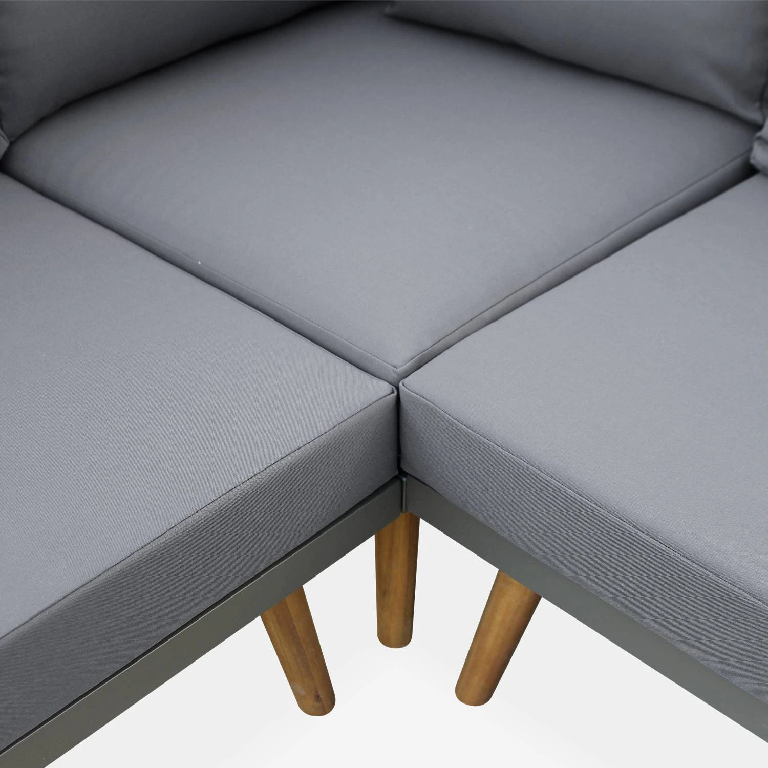 Avec un design minimaliste, le salon de jardin Buenos Aires est résolument moderne et élégant. Il accueille confortablement 5 personnes grâce à ses coussins d’assise et de dossier rembourrés. Bien pensé, ce salon de jardin en angle est doté de deux tablettes latérales qui sont très pratiques pour poser votre verre ou encore des livres. Il est également accompagné d’une table basse assortie.