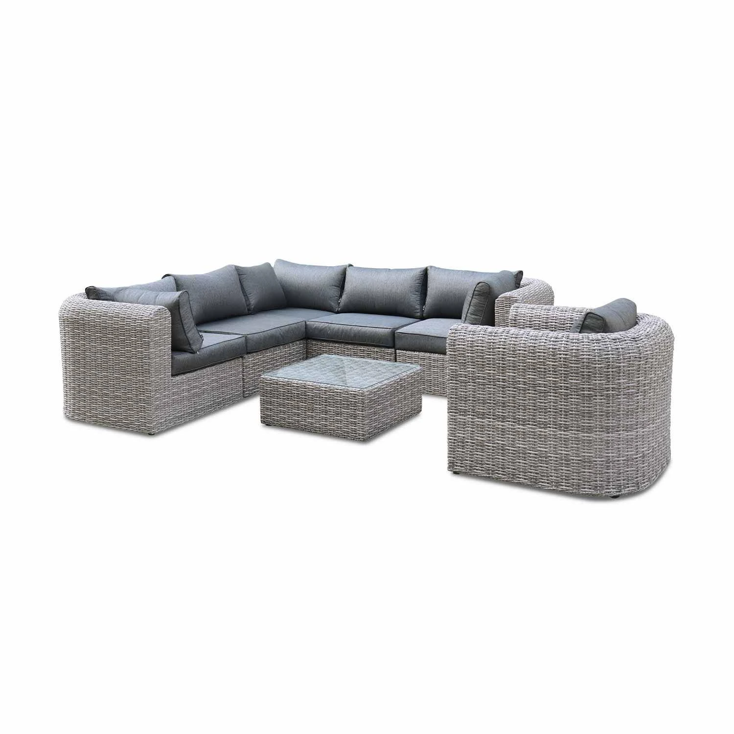 sweeek sélectionne avec attention la qualité de la matière choisie pour le tressage. De ce fait, la durée de vie du Tonico est exceptionnelle ! La résine tressée arrondie sweeek supporte les rayons du soleil et les intempéries (neige/ pluie / eaux salées). Les coussins sont déhoussables et résistants à l’eau. Pour garantir une résistance maximale, la structure du salon de jardin est en aluminium renforcé (ne rouille pas par nature). Les structures en aluminium sont, en plus, bien plus légères que les structures en acier. Le plateau en verre de la table basse est en verre sécurit de 5mm d’épaisseur. C’est un verre 5 fois plus résistant que le verre traditionnel.