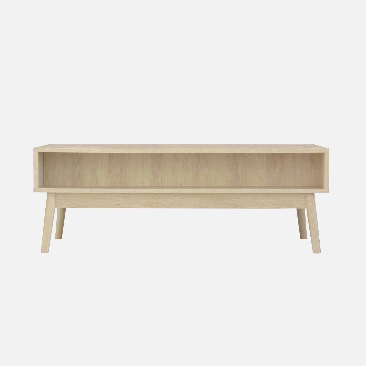 Table Basse Scandinave Décor Bois Rainuré 2 Niches, 1 Tiroir Couleur : Naturel