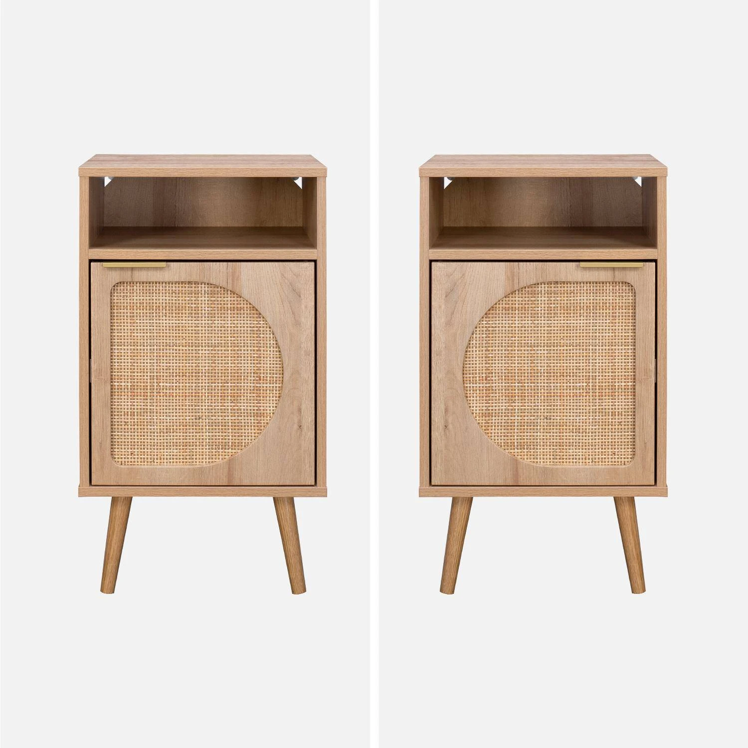 Votre chambre à besoin d’une touche de légèreté et d’un charme authentique et naturel ? C’est parfait, Eva est exactement la table de chevet qu’il vous faut ! Son joli décor bois et sa porte réversible en cannage arrondi apportent originalité et élégance à l’ensemble. Pour un côté plus raffiné et délicat, la poignée de la porte est en métal doré. Rangez vos livres et autres affaires dans sa porte et dans son petit espace de rangement et apportez la touche finale en installant une lampe de chevet de style bohème ainsi qu’une jolie bougie sur son plateau. Votre chambre n’aura jamais été aussi belle qu’avec Eva !