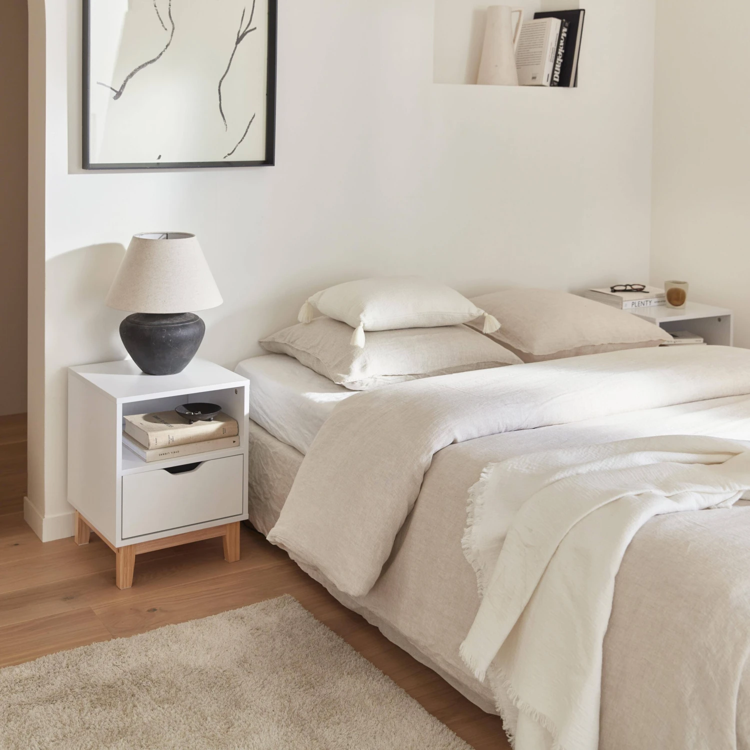 Faites une place dans votre chambre pour nos tables de chevet Floki qui apporteront douceur et lumiĂšre dans votre intĂ©rieur. Leurs couleurs naturelles sâintroduiront facilement dans tous les styles de dĂ©co. Avec leurs lignes droites et leurs pieds en bois, ces jolies tables de nuit scandinaves sâinscrivent parfaitement dans la tendance du moment. CĂŽtĂ© rangement, la petite niche et le tiroir vous permettront de ranger tout ce dont vous avez besoin pour passer une bonne nuit. Le tiroir est dotĂ© d’une encoche pour plus de facilitĂ©. Ajoutez une jolie lampe vintage sur son plateau, petit effet dĂ©co assurĂ© !Â