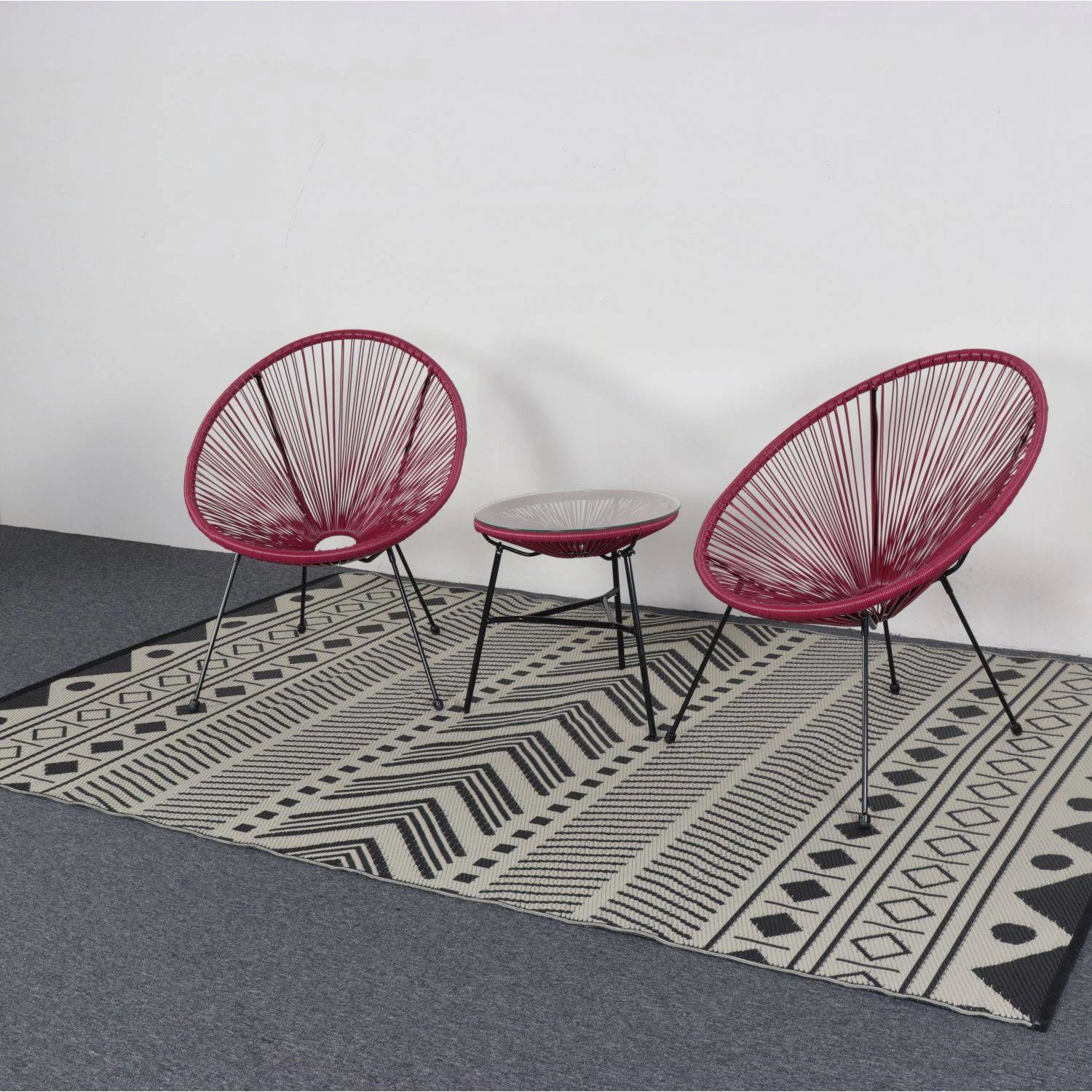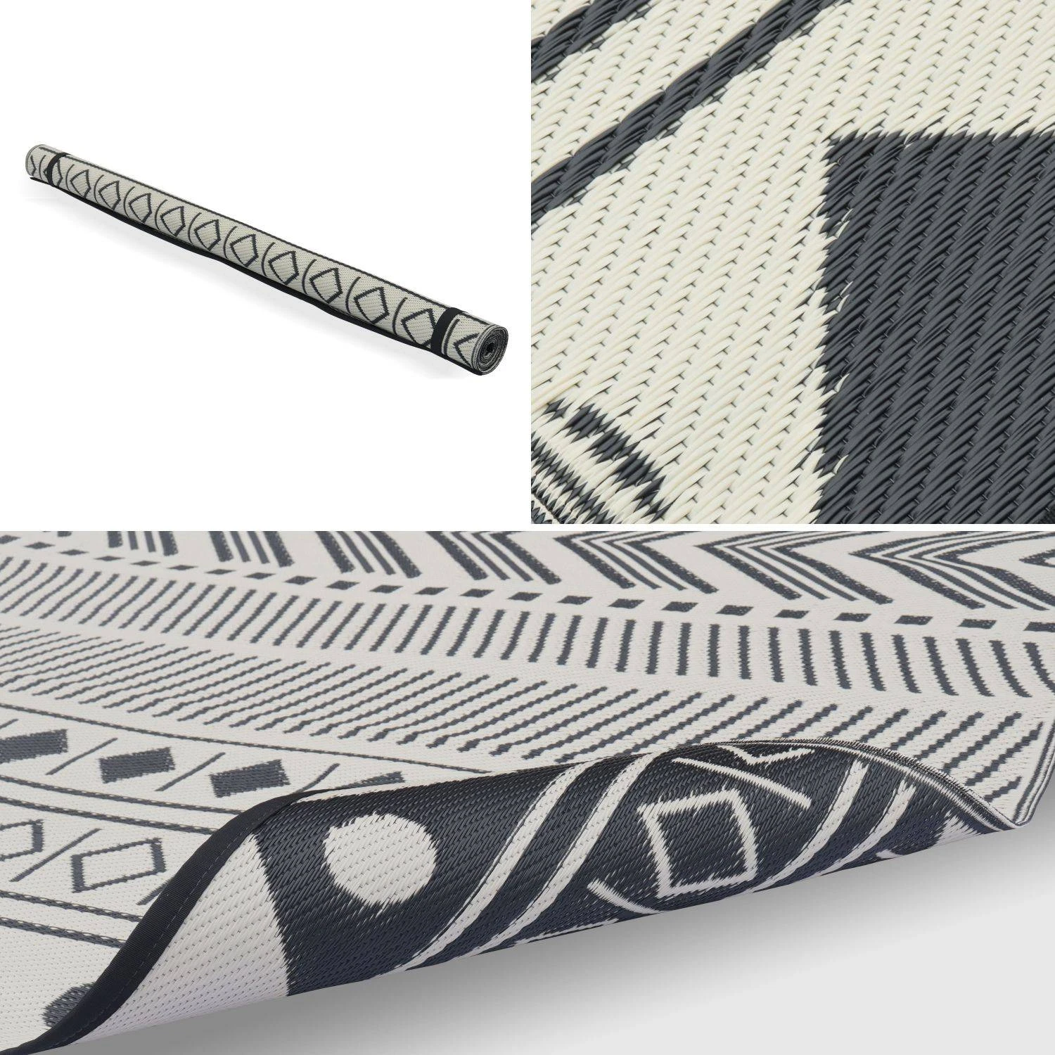 Tissé à partir de pailles en polypropylène, ce joli tapis apporte une touche de fantaisie à votre extérieur avec son motif graphique tendance. Sa finition est soignée grâce aux bordures situées à chaque extrémité. Cela lui permet de trouver sa place aussi bien en intérieur qu’à l’extérieur. Très léger, ce tapis réversible se déplace facilement selon vos envies ou la météo. Il peut aussi être emmené aisément pour un pique-nique ou à la plage.