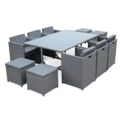 Table De Jardin Aluminium Et Textilène, 8 Chaises Empilables Couleur : Anthracite / Gris