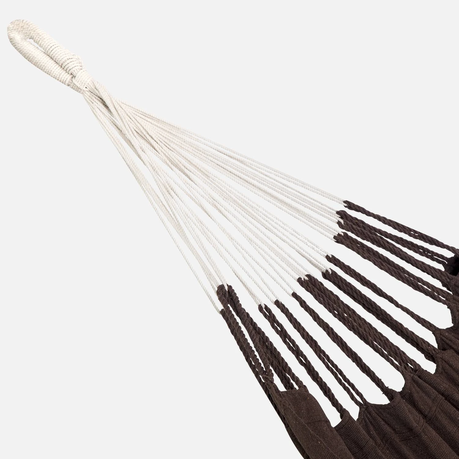 Toile de hamac fabriquée en Colombie équipée des cordes d’accroches.