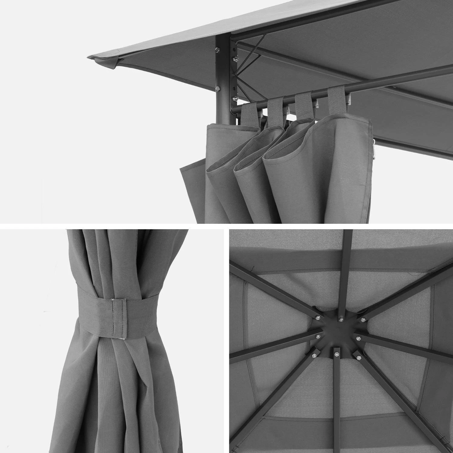 Divio est une trĂšs jolie tonnelle adĂ©quate pour vos brunchs et apĂ©ritifs dans le jardin. TrĂšs esthĂ©tique, elle est Ă©galement trĂšs pratique car elle peut se fermer complĂštement, si besoin, grĂące aux rideaux fournis. Les rideaux se ferment grĂące Ă une fermeture Ă©clair. Lorsquâils sont ouverts, ils se fixent aux pieds de la pergola Ă lâaide dâune bande velcro.Â